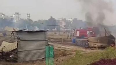 पटाखा बाजार में लगी भीषण आग, 60 से अधिक दुकानें जली, कई दुकानदार भी झुलसे