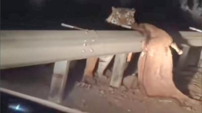 हाइवे 18 बालमपुर घाटी पर गाय के बछड़े को घसीटकर ले जाते दिखा बाघ, क्षेत्र में दहशत का माहौल