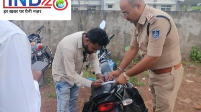 भोपाल विदिशा हाईवे पर पुलिस ने की वाहन चेकिंग, बिना हेलमेट 8 वाहन चालकों के बनाए चालान