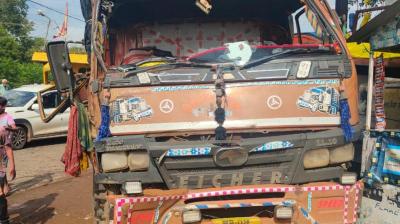 2 ट्रकों की आमने सामने ज़ोरदार भिड़ंत, बाल-बाल बचे ड्रायवर, ट्रक छतिग्रस्त
