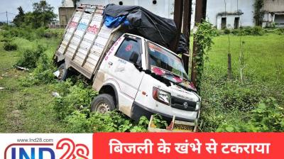 दीवानगंज में हाइवे पर टमाटर से भरा लोडिंग मैजिक 11 केवी बिजली खंभे से टकराया, बाल-बाल बचा चालक