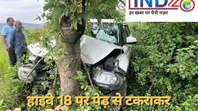 हाइवे 18 के दीवानगंज में गाय को बचाने के चक्कर में कार रोड से उतरकर पेड़ से टकराई