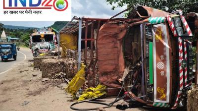 भोपाल-विदिशा हाईवे कर्क रेखा के पास बड़ा हादसा टला, स्टेरिंग फेल होने से पुलिया पर लटक गई एम्बुलेंस