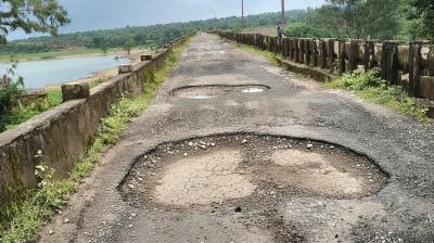हलाली डैम की पिच मार्ग पर बड़े-बड़े गड्ढों से हादसों का खतरा, रोजाना निकलते हैं सैकडों वाहन