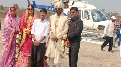शाही अंदाज की अनोखी शादी: दूल्हा दुल्हन की हेलीकॉप्टर से विदाई