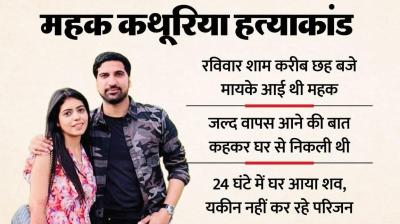 गुरुग्राम | चरित्र पर संदेह के चलते सनकी पति ने गुरुग्राम में एचडीएफसी बैंक में डिप्टी मैनेजर पत्नी महक कथूरिया (26) की गले में कैंची घोंप हत्या कर दी। वारदात...