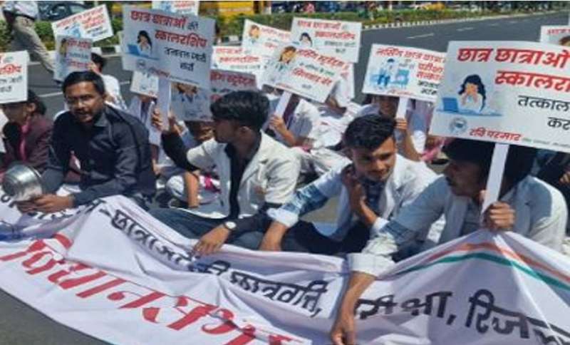 NSUI का विरोध प्रदर्शन: नर्सिंग छात्राओं के समर्थन में सड़क पर उतरे कार्यकर्ता, बारिश में भी डटे रहे