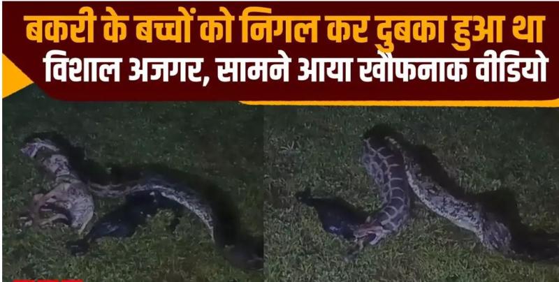 विशाल अजगर का अजीबोगरीब नजारा, बकरी के दो बच्चों को निगला और उगल दिया, कैमरे में कैद हुई पूरी घटना