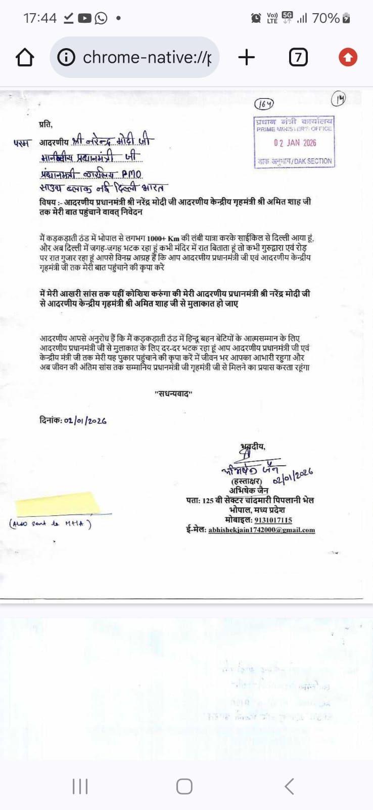 शिकायतकर्ता अभिषेक जैन ने इस मामले को उजागर करने के लिए कड़ाके की ठंड में भोपाल से नई दिल्ली तक साइकिल से लगभग एक हजार किलोमीटर की यात्रा की है। उनका कहना है कि दिल्ली पहुंचने के बाद भी उन्हें न्याय के लिए दर-दर भटकना पड़ रहा है। कभी मंदिर, कभी गुरुद्वारे और कभी सड़कों पर रात गुजारने को वे मजबूर हैं।अभिषेक जैन ने अपनी शिकायत में आरोप लगाया है कि शारिक मछली और उसके परिजनों पर ड्रग्स तस्करी, अवैध हथियार रखने, सरकारी जमीन और तालाबों पर कब्जा करने सहित कई गंभीर आपराधिक गतिविधियों के आरोप पहले से ही लगते रहे हैं। इसके बावजूद स्थानीय स्तर पर प्रभावी कार्रवाई नहीं की गई।