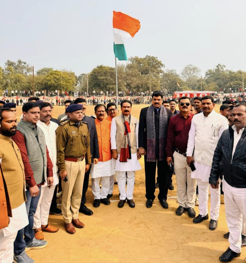 गुना। शहर में आयोजित 33वीं स्वर्गीय राजेंद्र सिंह रघुवंशी स्मृति टेनिस बॉल 8 विकेट क्रिकेट प्रतियोगिता का भव्य समापन 26 जनवरी 2026 को फाइनल मुकाबले के साथ हुआ। आयोजक राम कुमार रघुवंशी ने बताया कि फाइनल मैच राधा रानी 7टी 7टी क्लब और ए टू जेड क्लब के मध्य खेला गया जो अत्यंत रोमांचक रहा। इस मैच में पहले बल्लेबाजी करते हुए ए टू जेड क्लब ने 11.5 ओवरों में सभी विकेट खोकर 96 रन बनाए और विपक्षी टीम के सामने 97 रनों का लक्ष्य रखा। जवाब में उतरी राधा रानी 7टी 7टी क्लब की टीम ने आक्रामक खेल दिखाते हुए मात्र 7.5 ओवरों में बिना कोई विकेट गंवाए लक्ष्य हासिल कर लिया। राधा रानी क्लब की ओर से अमनदीप सिंह दिलों ने शानदार बल्लेबाजी करते हुए मात्र 31 गेंदों में 4 छक्कों की मदद से 70 रनों की आतिशी पारी खेली, जिसके लिए उन्हें मैन ऑफ द मैच चुना गया। विजेता टीम राधा रानी क्लब को प्रथम पुरस्कार के रूप में 1,11,000 रुपये एवं ट्रॉफी प्रदान की गई, वहीं उपविजेता ए टू जेड टीम को द्वितीय पुरस्कार 51,000 रुपये और ट्रॉफी दी गई।