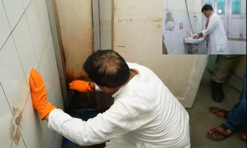 स्वास्थ्य सेवाओं पर नाराज मंत्री तोमर ने अस्पताल की पानी टंकी की खुद की सफाई