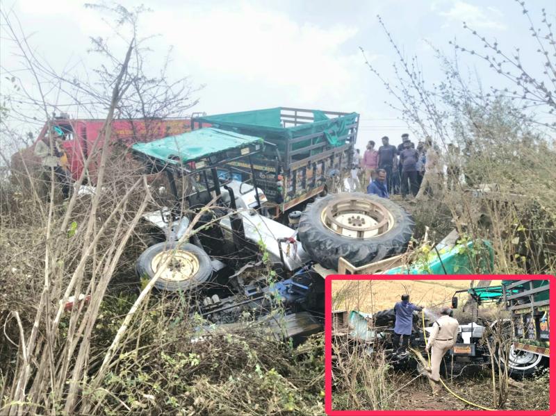 स्टेट हाइवे 18 पर 2 ट्रैक्टर-ट्रॉली की भिड़ंत, खाई में पलटकर लगी आग, बड़ा हादसा टला