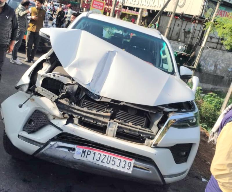 जिला पंचायत अध्यक्ष प्रतिनिधि ढाबे से खाना खाकर लौट रहे थे विदिशा--दुर्घटना में बाल-बाल बचे विदिशा जिला पंचायत अध्यक्ष प्रतिनिधि कैलाश रघुवंशी अपनी फार्च्यूनर कार एमपी 13 जेडयू 5339 से भोपाल से लौट रहे थे। उनके साथ कार में 4 से 5 लोग और बेठे थे। सभी रास्ते में वाटिका ढाबे पर खाना खाने रुके थे। जब सभी खाना खाकर विदिशा लौट रहे थे तो अनियंत्रित ट्रक के चालक ने फॉर्च्यूनर कार में सामने से टक्कर मार दी। टक्कर इतनी तेज थी कि फार्च्यूनर जैसी मजबूत कार भी आगे से पूरी तरह से छतिग्रस्त हो गई। कार की हालत देखकर कोई भी अंदाज़ नही लगा सकता कि उसमें बेठे हुए लोगों को कोई भी चोट नही आई।