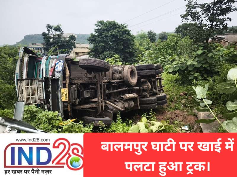 भोपाल-विदिशा स्टेट हाईवे-18 पर स्थित बालमपुर घाटी में बुधवार को बड़ा हादसा होते-होते टल गया। सागर से इंदौर जा रहा एमपी15 एचए 0297 ट्रक ब्रेक फेल होने से अचानक रिवर्स होकर करीब 10 फीट गहरी खाई में पलट गया। ट्रक चालक और क्लीनर ने समय रहते कूदकर अपनी जान बचा ली। हादसे में कोई जनहानि नहीं हुई, लेकिन ट्रक को भारी नुकसान पहुँचा है। बालमपुर घाटी पर आए दिन ऐसे हादसे होते हैं, जिससे स्थानीय लोग लगातार सुरक्षा इंतज़ाम बढ़ाने की मांग कर रहे हैं।