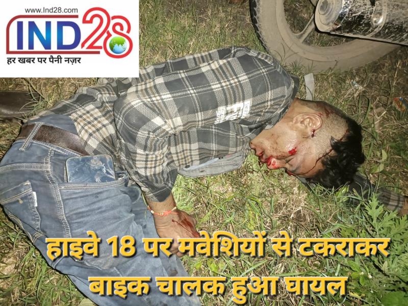 हाइवे 18 पर बैठे मवेशियों से टकराकर बाइक सवार घायल, गंभीर हालत में सांची अस्पताल रेफर