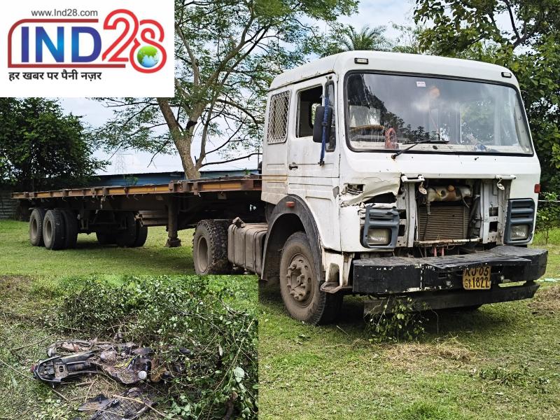 कुलहाड़िया के पास हाईवे पर ट्राले ने खड़ी बाइक रौंदी, खेत में उतरा बाल-बाल टला बड़ा हादसा
