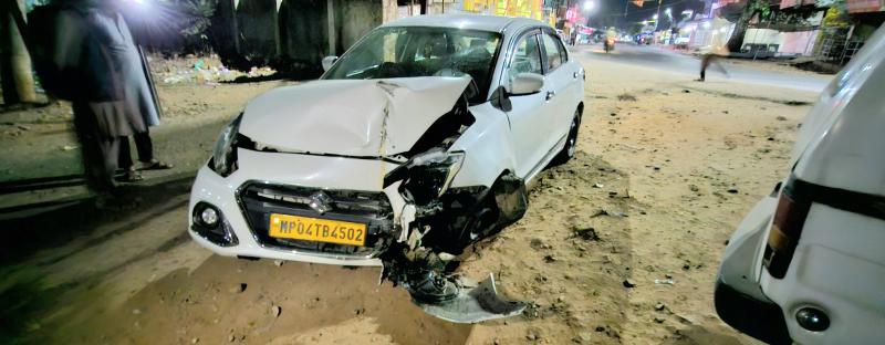 भोपाल विदिशा स्टेट हाइवे 18 के सलामतपुर में बीती देर रात एक तेज़ रफ़्तार कार अनियंत्रित होकर द्वारकाधीश मंदिर की दीवार में घुस गई। टक्कर से मंदिर का दरवाजा छतिग्रस्त हो गया। और कार में ड्रायवर के पास बैठा युवक घायल हो गया। वो तो गनीमत रही कि हादसे के वक्त मंदिर में कोई श्रद्धालु मौजूद नही था। वरना बड़ा हादसा हो सकता था। पुलिस से मिली जानकारी अनुसार बीती देर रात लगभग डेढ़ बजे अमित रघुवंशी और देव बैरागी अपनी कार एमपी04 टीबी 4502 में सवार होकर भोपाल से तेरहवीं कार्यक्रम में शामिल होने बासौदा जिला विदिशा जा रहे थे। सलामतपुर पहुंचने पर अंधे मोड़ पर सामने से आ रहे ट्रक की वजह से द्वारकाधीश मंदिर की दीवार में घुस गए। जिसकी वजह से मंदिर की दीवार और गेट छतिग्रस्त हो गए। वहीं कार चला रहे अमित रघुवंशी दुर्घटना में बाल बाल बच गए। लेकिन साथ बैठे देव बैरागी को सिर में चोटें आ गईं। और कार का अगला हिस्सा पूरी तरह से डेमेज हो गया। दोनों युवक रिश्तेदारी के तेरहवीं कार्यक्रम में शामिल होने बासौदा जा रहे थे। कार चालक अमित रघुवंशी और द्वारकाधीश मंदिर समिति के बीच आपसी रजामंदी से समझौता हो गया। इसलिए पुलिस ने कोई कार्रवाई नही की।