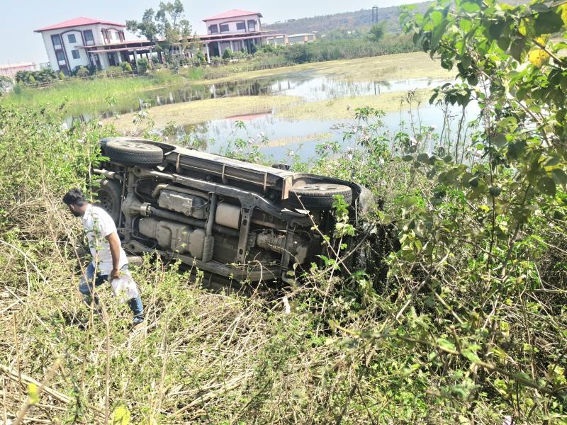 भोपाल विदिशा हाइवे 18 पर तालाब में गिरी स्कॉर्पियो, बड़ा हादसा टला