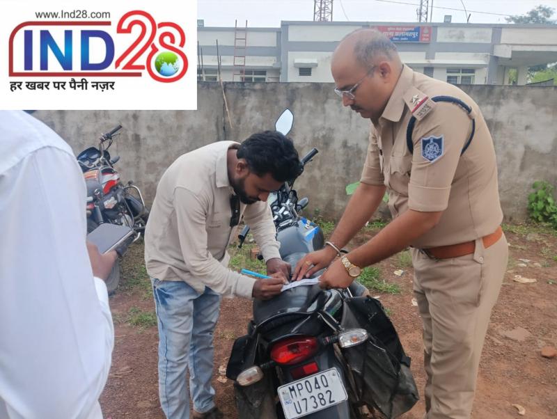 भोपाल विदिशा हाईवे पर पुलिस ने की वाहन चेकिंग, बिना हेलमेट 8 वाहन चालकों के बनाए चालान