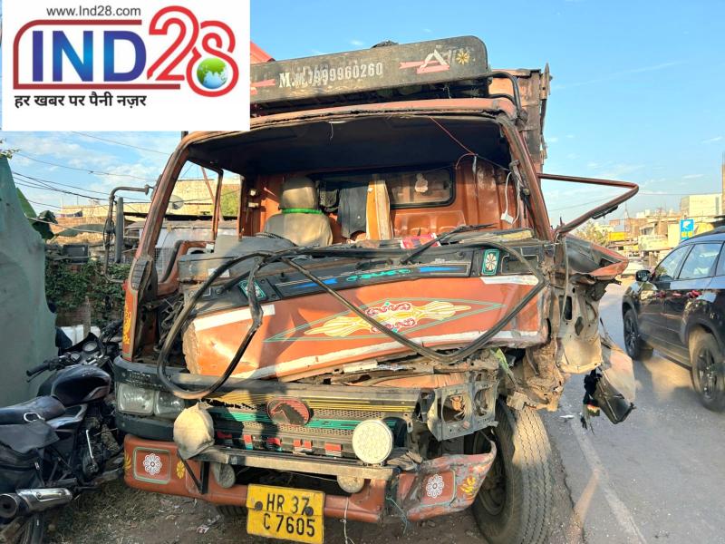 बेरखेड़ी चौराहा पर दो आयशर ट्रकों में जोरदार भिड़ंत, एक घायल