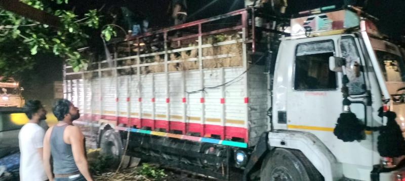 चलते ट्रक में लगी आग, ड्रायवर क्लीनर ने कूदकर बचाई जान
