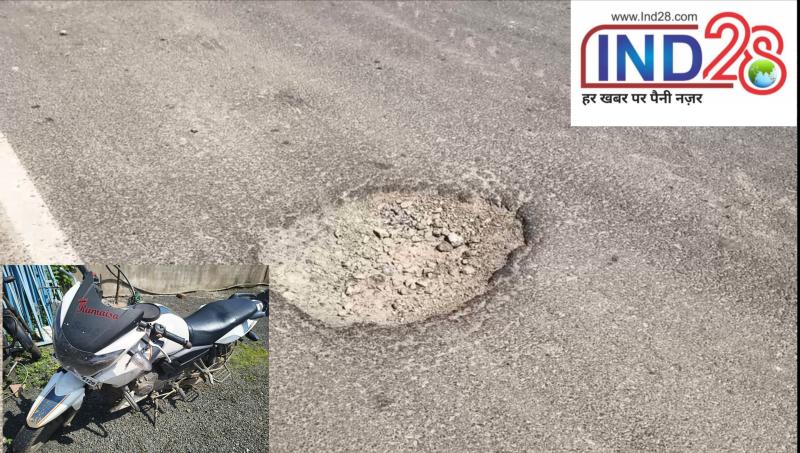 हाईवे 18 पर सड़क के गड्ढे बने हादसों का सबब, दीवानगंज में बाइक सवार गिरकर घायल