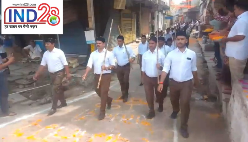 सांची में आरएसएस का शताब्दी वर्ष पथ संचलन, पुष्प वर्षा से हुआ भव्य स्वागत