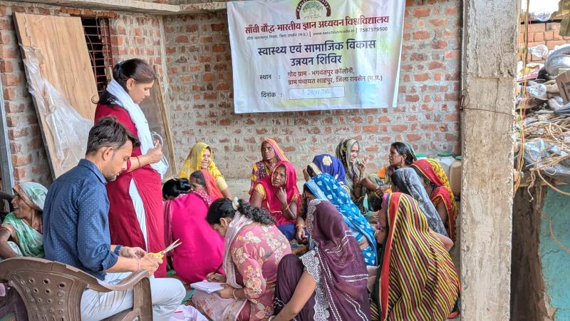 साँची बौद्ध-भारतीय ज्ञान अध्ययन विश्वविद्यालय द्वारा गोद लिए गए ग्राम भगवन्तपुर कॉलोनी ग्राम पंचायत शाहपुर, जिला रायसेन में मंगलवार को नि:शुल्क स्वास्थ्य परीक्षण शिविर का आयोजन किया गया। कुलसचिव प्रो रामनिवास गुप्ता के निर्देशन में विश्वविद्यालय के स्वास्थ्य विभाग द्वारा आयोजित शिविर में ग्रामीणों, विशेषकर महिलाओं ने उत्साहपूर्वक भाग लिया। स्वास्थ्य परीक्षणशिविर के दौरान कुल 65 महिलाओं का स्वास्थ्य परीक्षण किया गया। इस दौरान उनकी सामान्य बीमारियों की जाँच की गई एवं आवश्यक चिकित्सकीय परामर्श दिया गया।