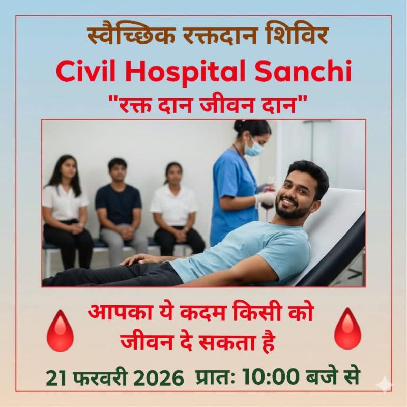 आज सांची सिविल अस्पताल में स्वैच्छिक रक्तदान शिविर का आयोजन