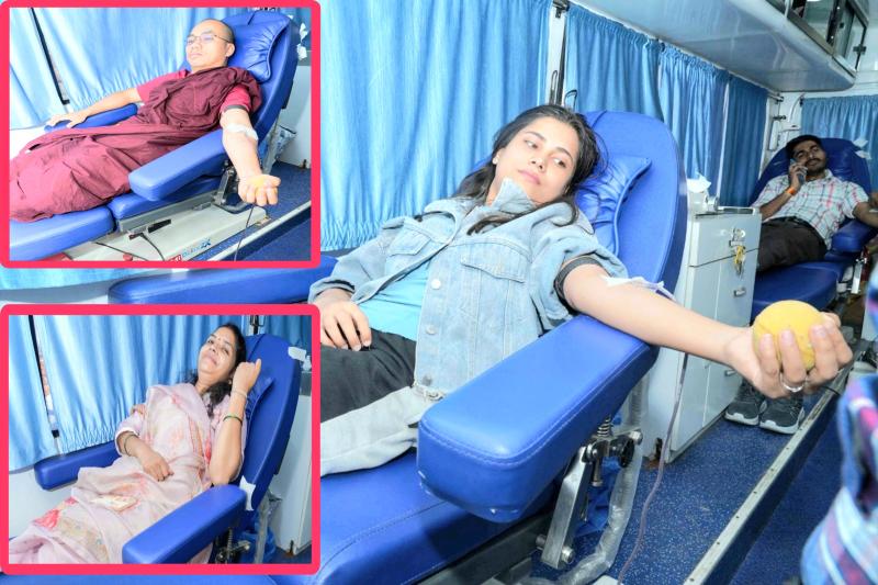 कस्बे में स्तिथ सांची बौद्ध-भारतीय ज्ञान अध्ययन विश्वविद्यालय में सोमवार को रक्तदान शिविर आयोजित किया गया। इस रक्तदान शिविर में विश्वविद्यालय के बौद्ध अध्ययन विभाग में पढ़ाई कर रहे 03 विदेशी छात्रों ने भी रक्तदान किया। रक्तदान करने वाले ये तीनों छात्र कुमुद्रा, वेपुला भंते और सुवन्ना......म्यांमार के हैं और सांची विश्वविद्यालय के हॉस्टल में रहकर पढ़ाई कर रहे हैं। इन छात्रों के अलावा भारतीय चित्रकारी विभाग की छात्रा निहारिका सोलंकी ने भी आगे बढ़कर रक्तदान में हिस्सा लिया। विश्वविद्यालय के शिक्षकों, अधिकारियों-कर्मचारियों सहित कुल 19 लोगों ने रक्तदान किया। रायसेन सिविल अस्पताल की मोबाइल रक्तदान लैब में विश्वविद्यालय परिसर में रक्तदान की प्रक्रिया पूरी की गई। रायसेन सिविल अस्पताल के लैब टैक्नीशियन राजेश कुमार मोरे ने बताया कि रायसेन ज़िला मुख्यालय में प्रतिदिन बड़ी संख्या में खून की आवश्यकता होती है। उनका कहना था कि सिविल अस्पताल में सबसे अधिक रक्त, गर्भवती महिलाओं को लगाया जाता है क्योंकि वो और उनकी कोख में पल रहा बच्चा कुपोषण से पीड़ित होते हैं। उन्होंने कहा कि रायसेन ज़िला अस्पताल में हमेशा खून की कमी होती है क्योंकि सबसे ज़्यादा रक्त गर्भवती महिलाओं, थेलेसीमिया के पेशेंट्स को लगता है। राजेश मोरे के कहना है कि अब लोग रक्तदान के लिए काफी जागरुक हो गए हैं और अपनी शादी की सालगिरह, बर्थडे इत्यादि के अवसर में भी आकर रक्तदान करते हैं। विश्वविद्यालय में खड़ी इस ब्लड डोनेशन लैब के सहायकों ने बताया कि लोग रक्तदान कर गर्व महसूस करते हैं कि किसी की जान बचाने में वो सहायक बने। मोबाइल लैब के एक सहायक ने कहा कि लोग रक्तदान को लेकर बेहद जागरुक हो चुके हैं कि कई बार वो 100 से अधिक रक्तदाताओं का ब्लड ले चुके हैं।