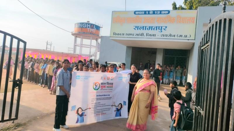 बाल विवाह आज भी समाज में व्याप्त एक गंभीर समस्या है, जो बच्चों के स्वास्थ्य, शिक्षा और उनके उज्ज्वल भविष्य को गहरा आघात पहुंचाती है। इसे समाप्त करने के लिए सरकार और सामाजिक संगठनों द्वारा निरंतर प्रयास किए जा रहे हैं। इसी दिशा में एक प्रभावशाली कदम उठाते हुए एसओएस के परिवार शसक्तिकरण के माध्यम से ग्राम सलामतपुर के शासकीय हायर सेकेंडरी स्कूल में शनिवार को एक कार्यक्रम आयोजित किया गया। जिसमें लगभग 300 बच्चें व 100 महिलाएं शामिल हुईं। कार्यक्रम में बाल विवाह रोकथाम के विषय में जानकारी दी गई एवं कानूनी प्रावधान के बारे में विस्तार से चर्चा की गई बाल विवाह रोकने की शपथ दिलाई एवं नुक्कड़ नाटक के माध्यम से एक संदेश देने का प्रयास किया गया। इस कार्यक्रम में संजय सिंह बचपन एनजीओ, वंदना जी, सुनारी सरपंच प्रतिनिधि शेरसिंह राजपूत एवं अक्षय गोयल प्रिंसिपल सरकारी स्कूल, एसओएस संस्था से प्रमेन्द्र तिवारी, स्वप्निल जगताप एवं अब्दुल सलीम मौजूद थे।