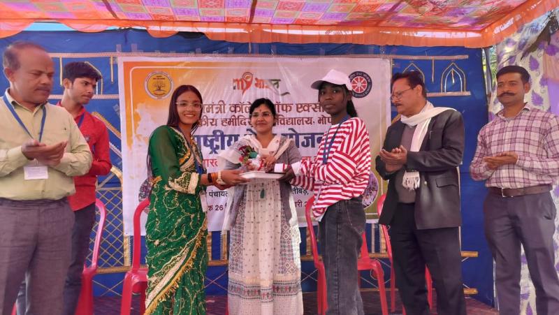 प्रधानमंत्री कॉलेज ऑफ़ एक्सीलेंस शासकीय हमीदिया महाविद्यालय की राष्ट्रीय सेवा योजना इकाई के सात दिवसीय विशेष शिविर के चतुर्थ दिवस की शुरुआत सुबह की प्रभात फेरी ,प्रार्थना एवं योग अभ्यास के साथ हुई श्रम सीकर में शिविरार्थियों की रासेयो डायरी के बारे में बताया गया शिविर के बौद्धिक सत्र में मुख्य अतिथि के रूप में एमएलबी महाविघायल के हिंदी विषय के प्राध्यापक डॉ सुधीर कुमार शर्मा एवं हमीदिया महाविद्यालय की प्राध्यापिका डॉ संस्कृति दामड़े एवं वरिष्ठ स्वयंसेवक अतुल सिंह राजावत ने छात्रों का मार्गदर्शन किया और छात्रों के अनुभव सुने कार्यक्रम अधिकारी डॉ आर एस नरवरिया ने अतिथियों का स्वागत उद्बोधन किया एवं डॉ आर पी शाक्य ने सभी का आभार व्यक्त किया । एन एस एस स्वयंसेविका गूंजा नागवंशी ने मंच संचालन किया। शिविर में रात्रि के सांस्कृतिक कार्यक्रम में कश्मीरी, राजस्थानी, हरियाणवी एवं अन्य प्रस्तुति स्वयंसेवक ने दी वरिष्ठ स्वयंसेवक की भूमिका में उमेश कुमार प्रजापति, इरफान अंसारी, जयकुमार, जयंत एवं शिविर नायक आयुष ठाकुर, आर्यन रजक एवं स्टेट कैम्पर अरविंद जाटव शिविर के कार्यों की भूमिका निभा रहे है साथ ही स्वयंसेवक अर्जुन अहिरवार, सुमित, केशव, रीतेश, रोशन, वसीम, राजा, शिवेश, विनय, शशांक, यश, मयंक, कृष, सतीश, नारायण, प्रतीक्षा, जागृति, यशिका, अंजली, भारती, मधु, भानुप्रिया, संगीता, संध्या एवं अन्य स्वयंसेवक शिविर ने उपस्थि है।