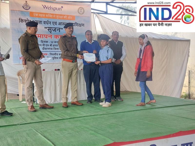 दीवानगंज स्थित पीएम श्री उच्चतर माध्यमिक विद्यालय में बचपन संस्था एवं वेलस्पन के सहयोग से संचालित सृजन कार्यक्रम के अंतर्गत किशोर क्षमता वर्धन एवं आत्मरक्षा प्रशिक्षण का सफलतापूर्वक समापन हुआ। यह प्रशिक्षण पिछले एक माह से लगातार चल रहा था, जिसमें छात्र-छात्राओं को आत्मरक्षा की व्यावहारिक तकनीकों के साथ आत्मविश्वास और नेतृत्व क्षमता विकसित करने का प्रशिक्षण दिया गया।समापन अवसर पर आयोजित कार्यक्रम में मुख्य अतिथि के रूप में अतिरिक्त पुलिस अधीक्षक कमलेश कुमार उपस्थित रहे। साथ ही सालमपुर थाना प्रभारी दिनेश रघुवंशी, चौकी प्रभारी सुनील शर्मा, दीवानगंज सरपंच गिरजेश नायक, विद्यालय के प्राचार्य एवं शिक्षकगण भी कार्यक्रम में शामिल हुए। अतिथियों ने विद्यार्थियों को संबोधित करते हुए आत्मरक्षा के महत्व पर प्रकाश डाला और ऐसे प्रशिक्षण कार्यक्रमों को समय की आवश्यकता बताया। कार्यक्रम के दौरान छात्र-छात्राओं द्वारा सांस्कृतिक प्रस्तुतियां भी दी गईं, जिन्हें उपस्थित जनसमूह ने सराहा। समापन समारोह में बड़ी संख्या में विद्यार्थी उपस्थित रहे और प्रशिक्षण से मिले अनुभव साझा किए।