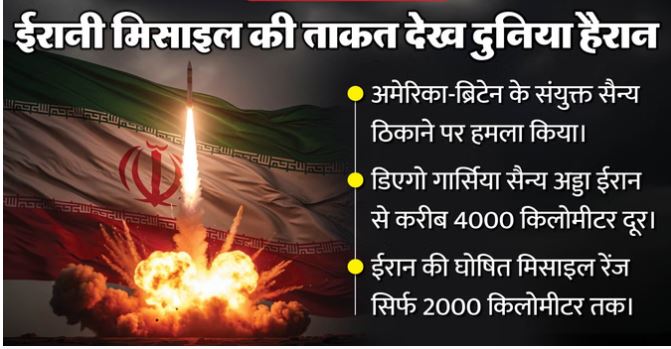 ईरान के विदेश मंत्री अब्बास अराघची ने हाल ही में कहा था कि उनकी बैलिस्टिक मिसाइलों की अधिकतम रेंज करीब 2000 किलोमीटर है। लेकिन डिएगो गार्सिया पर हमला इस दावे को चुनौती देता है। यह दूरी करीब 4000 किलोमीटर है, जिससे संकेत मिलता है कि ईरान के पास घोषित से कहीं ज्यादा लंबी दूरी तक मार करने की क्षमता हो सकती है।