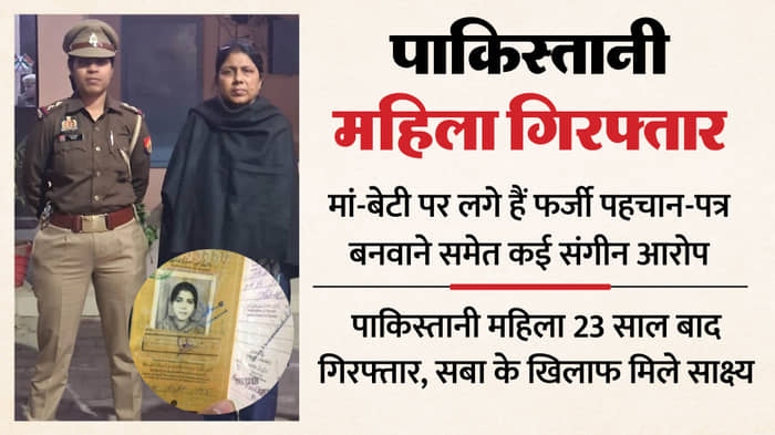 सोमवार को देहली गेट थाना पुलिस ने 23 साल बाद उसे गिरफ्तार कर लिया। नाजिया और उसकी बेटी एमन फरहत पर फर्जी पासपोर्ट, वोटर कार्ड आदि बनवाने के आरोप में प्राथमिकी दर्ज करने के बाद यह कार्रवाई की है। प्राथमिकी दर्ज कराने वाली महिला ने नाजिया के आईएसआई से भी जुड़े होने का शक जाहिर किया है। देहली गेट की कोठी अतानस निवासी रुखसाना ने दर्ज कराई गई प्राथमिकी में कहा कि जली कोठी की नादिर अली बिल्डिंग निवासी बैंड कारोबारी फरहत मसूद (पुत्र मसूद अहमद) ने वर्ष 1988 में पाकिस्तान के लाहौर जाकर सबा उर्फ नाजी उर्फ नाजिया नाम की महिला से पाकिस्तान में निकाह किया था।इसके लगभग एक साल बाद वह पति फरहत के साथ लॉन्ग टर्म वीजा पर भारत आ गई और दंपती के तीन संतान हुई। इनमें दो बेटे भारत में हुए। वर्ष 1993 में नाजिया पाकिस्तान गईं। वहां उसने 25 मई 1993 को बेटी एमन फरहत को जन्म दिया। आरोप है कि पाकिस्तान से लौटते समय नाजिया अपने पाकिस्तानी पासपोर्ट पर एमन फरहत को भारत में ले आई।यहां आने के बाद एमन का दाखिला कैंट के एक प्रतिष्ठित स्कूल में करा दिया गया। पाकिस्तान में जन्म होने के कारण एमन के भी पाकिस्तानी होने और फर्जी दस्तावेज बनवाकर भारत में रहने का आरोप है। प्राथमिकी में सबा के पिता पर पाकिस्तानी खुफिया एजेंसी आईएसआई से जुड़े होने का भी शक जाहिर किया गया हैएसपी सिटी आयुष विक्रम सिंह ने बताया कि देहली गेट पुलिस और खुफिया विभाग की टीम ने नाजिया से पूछताछ की और उसके पहचान संबंधित कागजात लेकर जांच की। आरोप सही पाए जाने पर सबा उर्फ नाजिया को गिरफ्तार कर लिया गया। आरोपी महिला को मंगलवार को कोर्ट में पेश किया जाएगा। वहीं, आरोपी पक्ष का कहना है कि संपत्ति विवाद में उनके खिलाफ प्राथमिकी दर्ज कराई गई है। फर्जी कागजात बनाने का आरोप गलत है।सबा के खिलाफ मिले साक्ष्य, बढ़ेगी विदेशी अधिनियम की धारा एसपी सिटी का कहना है कि वर्ष 2003 की मतदाता सूची में सबा उर्फ नाजिया के दो अलग-अलग नाम मिले हैं। इसके अलावा वह खुफिया विभाग को बिना बताए सहारनपुर आदि स्थानों पर गई हैं। इसके चलते इस मामले में विदेशी अधिनियम की धारा बढ़ाई जाएगी। हालांकि फर्जी पासपोर्ट नहीं मिला है। एसआईआर में सबा का मतदाता सूची से नाम कटा है या नहीं। इसकी जांच की जा रही है। एमन के खिलाफ अभी ठोस सबूत नहीं मिला है।