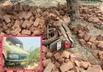 ईंटों से भरा हुआ 407 वाहन बाइक के ऊपर पलटा, 3 लोग घायल, 2 रेफर -