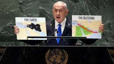 नेतन्याहू ने संयुक्त राष्ट्र में लहराए दो मैप.....एक का संबंध भारत से