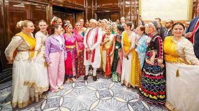 मॉस्को। मॉस्को में भारतीय समुदाय को संबोधित करने के दौरान प्रधानमंत्री नरेंद्र मोदी के स्वागत के लिए रूसी सांस्कृतिक मंडली ने कार्यक्रम प्रस्तुत की। कार्यक्रम के बाद प्रस्तुति देने वाली...