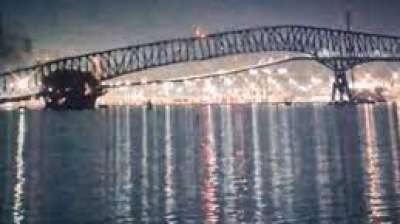 बाल्टीमोर । अमेरिका के मैरीलैंड में जहाज टकराने से बाल्टीमोर का फ्रांसिस स्कॉट की ब्रिज अमेरिकी समयानुसार सोमवार देर रात गिर गया था। कोस्ट गार्ड अधिकारी एडमिरल शैनन गिलरीथ ने...