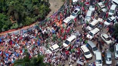 खुली जीप में सवार हो राहुल गांधी ने किया रोड शो