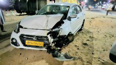 तेरहवीं कार्यक्रम में शामिल होने जा रहे युवकों की कार मंदिर में घुसी, युवक घायल, कार छतिग्रस्त