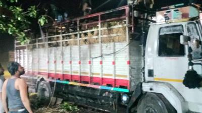 चलते ट्रक में लगी आग, ड्रायवर क्लीनर ने कूदकर बचाई जान