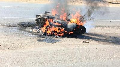 सांची विदिशा बाईपास के पास ट्रक की टक्कर से स्कूटी में लगी आग, चालक घायल