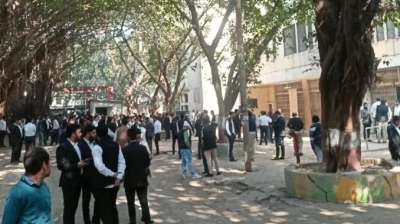 कचहरी में युवा वकीलों का विरोध जारी