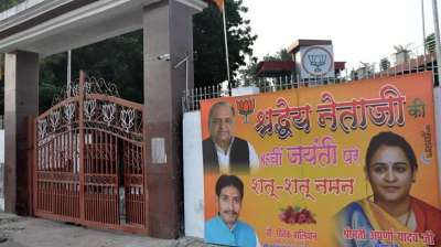 भाजपा मुख्यालय पर लगाए मुलायम के पोस्टर