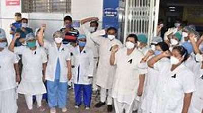 नर्सिंग स्टाफ का विरोध-प्रदर्शन जारी