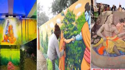 अयोध्या धाम में वॉल पेंटिंग से लेकर रेत शिल्प पर उकेरे जा रहे भगवान राम