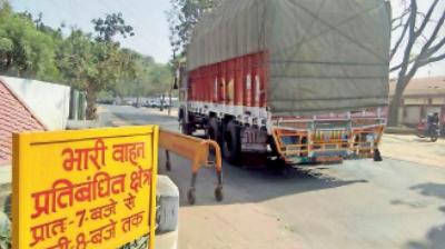 प्रतिबंध के बावजूद शहर के अंदर घुस रहे ट्रक और डंपर