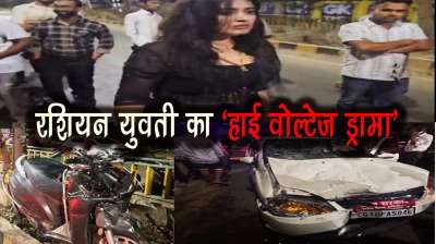 एक्टिवा सवार युवकों को टक्कर मार रशियन लड़की ने बिच सड़क मचाया बवाल, पुलिस से भी की बदसलूकी