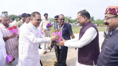 मुख्यमंत्री विष्णुदेव साय का बिलासपुर पहुंचने पर हेलीपैड पर स्वागत